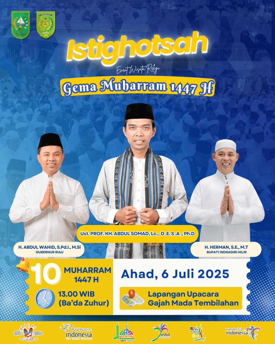 Indragiri Hilir – Sebagai bagian dari rangkaian Event Wisata Religi Gema Muharram 1447 H, Pemerintah Kabupaten Indragiri Hilir menggelar Istighotsah…