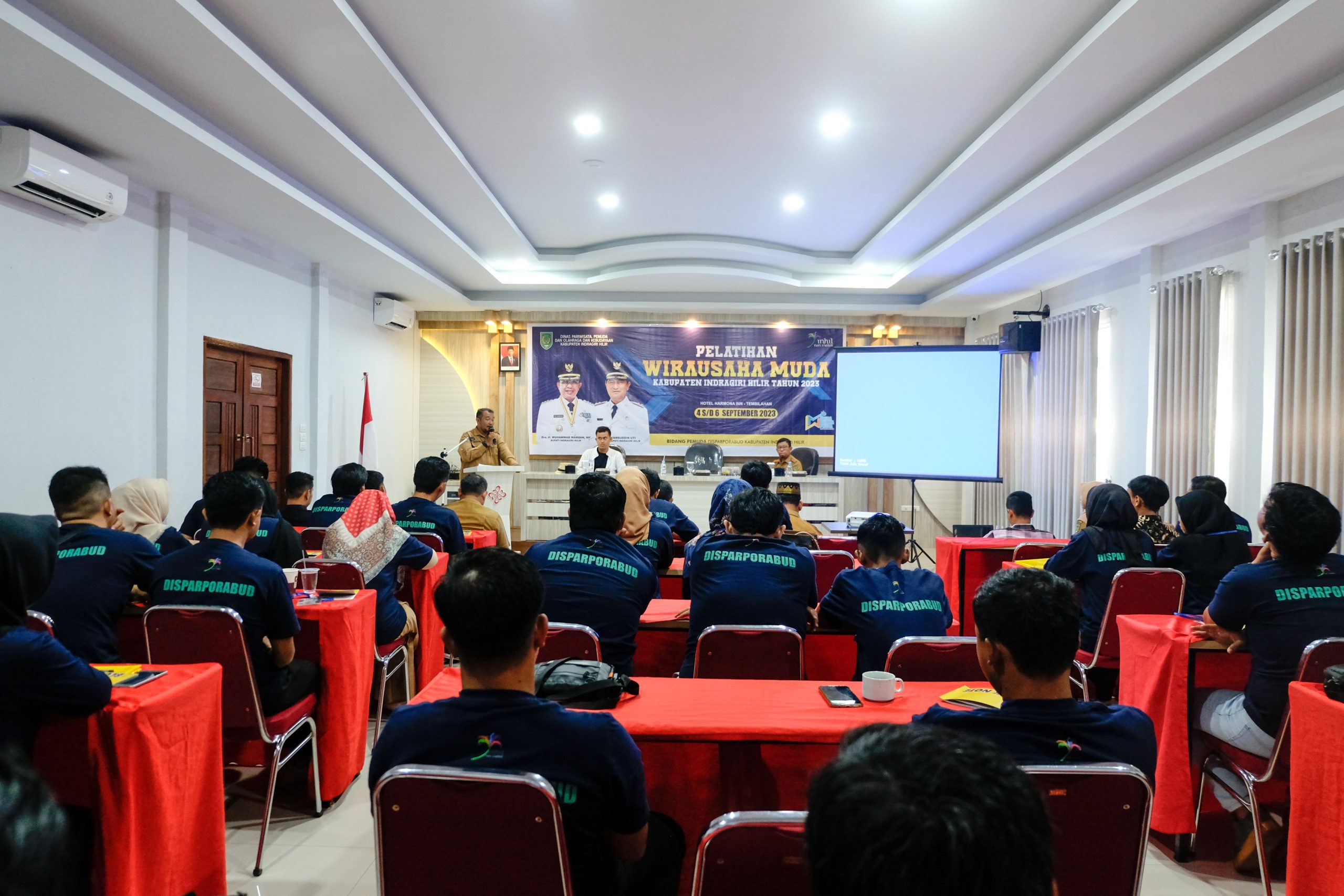 Acara Pelatihan Wirausaha Muda Kabupaten Indragiri Hilir yang ditaja oleh Bidang Pemuda Dinas Pariwisata, pemuda dan olahraga dan kebudayaan secara resmi dibuka oleh Sekretaris Disparporabud Inhil Ricky Putra SSTP, M.Si. Selasa 5 September 2023 di Aula Hotel Harmona Inn Tembilahan.